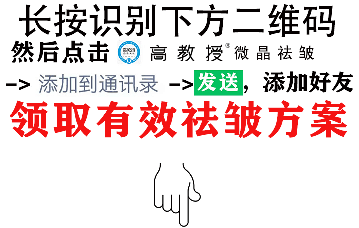 我们可以拍这胸脯说,如果你用了“微晶祛皱技术”,没有见到你想要的效果,你可以马上联系我们,我坚决给你负责到底!这是高教授微晶祛皱顾问的微信号